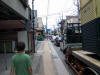 Walking down the street from the Great Budda. Here I have forgotten a turn and Alexander is just about to turn us around.